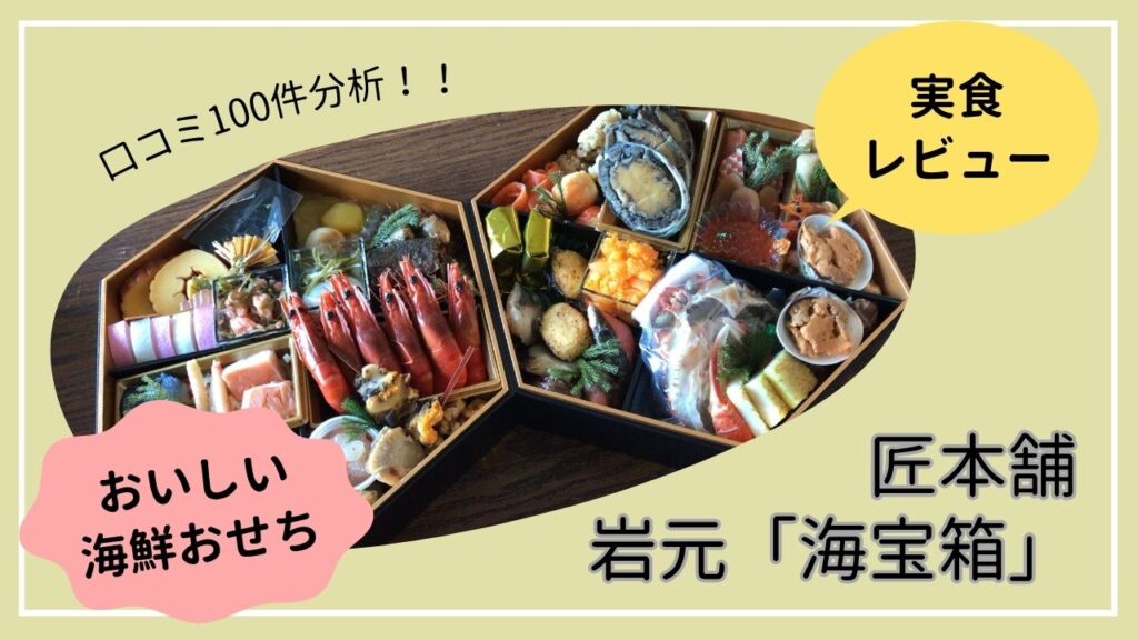 毎年の楽しみ、おせち。 せっかくなら、本当に美味しいものを選びたいですよね。 今回は、匠本舗で人気の京都祇園料亭『岩元』監修おせち《海宝箱》を実際に食べた感想をわかりやすくレビューします。 海宝箱のポイントをまとめると以下のとおりです。 「... -